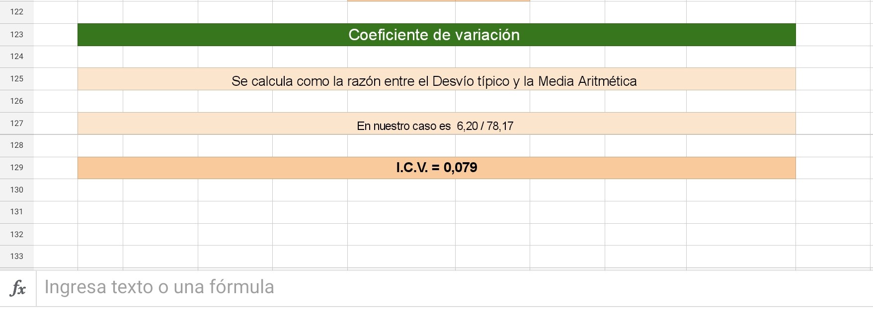 El coeficiente de variación permite establecer entre varias muestras, cuál se mantiene mas homogénea, este valor se lo compara con el Indice de Coeficiente de variación de la distribución Normal que es de 0,33, cuanto mas cerca esté de este valor más homogénea será la distribución.