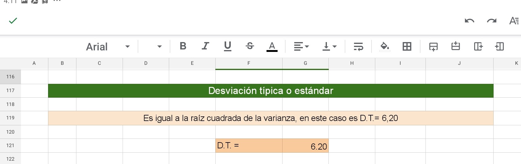 La formula para el Desvío es: e= Variable - Media Aritmética