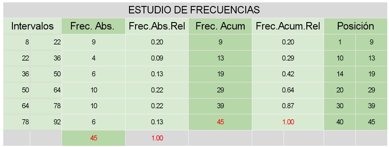 Frecuencias acumuladas - Frecuencias acumuladas relativas - Posición